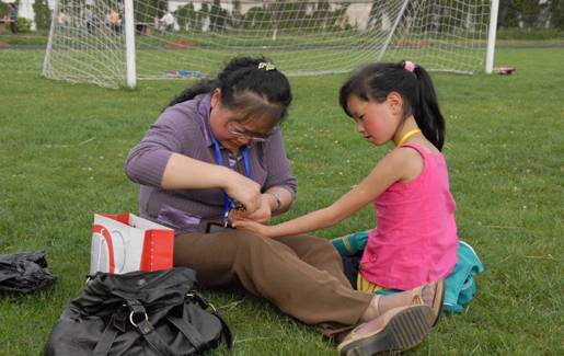 6月6日下午2時(shí)許,楊麗副主任醫(yī)師一行8人來到龍泉小學(xué),校方領(lǐng)導(dǎo)和任課老師熱情地為各位專家介紹災(zāi)區(qū)學(xué)生的學(xué)習(xí)和生活基本情況。2時(shí)30分,在老師的帶領(lǐng)下,分布在各班的災(zāi)區(qū)學(xué)生集聚在學(xué)校足球場(chǎng)草坪上,當(dāng)楊麗副主任醫(yī)師說:“同學(xué)們,今天我們一起來上一堂游戲課,好不好?”。同學(xué)們異口同聲地說:“好,謝謝阿姨!”。此時(shí),孩子們一張張笑臉顯得那么活潑可愛,在對(duì)同學(xué)們進(jìn)行分組后,各組相繼開展了“心有千千結(jié)”、“老鷹抓小雞”和腦筋急轉(zhuǎn)彎等游戲,通過開展這些游戲,一方面可以緩解同學(xué)們緊張的情緒,同時(shí)也可拉近與同學(xué)們的“距離”;另一方面還可以充分展示同學(xué)們相互之間的配合、協(xié)作以及互相關(guān)心、互相幫助的能力;另外,通過游戲的開展,也可及早發(fā)現(xiàn)有心理危機(jī)的同學(xué),從而對(duì)他們采取相應(yīng)的干預(yù)措施。經(jīng)過1個(gè)半小時(shí)的游戲,各組開始對(duì)這些同學(xué)使用精心設(shè)計(jì)的量表進(jìn)行心理評(píng)估,楊麗副主任醫(yī)師在接受云南電視臺(tái)《都市條形碼》欄目記者的現(xiàn)場(chǎng)采訪時(shí)表示:“通過今天的心理問卷評(píng)估,我們將對(duì)這些量表結(jié)果進(jìn)行詳細(xì)的分析匯總,從而全面掌握同學(xué)們的心理狀況,對(duì)需要危機(jī)干預(yù)的個(gè)別學(xué)生,我們將視情況采取一對(duì)一式的有效干預(yù),如絕大部分同學(xué)心理狀況不嚴(yán)重,我們則采取團(tuán)體干預(yù)措施,總之,通過一系列的心理危機(jī)干預(yù)工作,目的就是要保障這些孩子在今后生活中有一個(gè)健康的心理。”
