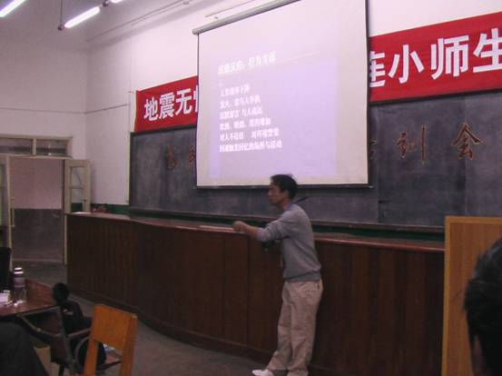 應(yīng)安寧連然小學(xué)的邀請(qǐng),昆明市心理危機(jī)研究與干預(yù)中心的專(zhuān)家,副主任醫(yī)師唐巖于2008年6月16日下午16:00在學(xué)校階梯教室對(duì)125名教職工進(jìn)行了危機(jī)干預(yù)知識(shí)的相關(guān)培訓(xùn),分析了異地求學(xué)的災(zāi)后兒童的心理狀況,介紹了老師比較適用的肌肉松弛療法,接觸災(zāi)后兒童的方式方法,作為老師如何應(yīng)對(duì)替代性創(chuàng)傷等,講課內(nèi)容豐富生動(dòng),循循善誘,贏得了一陣陣熱烈的掌聲。有的老師稱(chēng):“災(zāi)區(qū)的孩子來(lái)了,我們可以說(shuō)是即喜又憂,喜的是可以為汶川地震盡一份力,憂的是不知道孩子的心理狀況,該怎樣教育,有了這次的培訓(xùn),就像有了一盞指路燈,有了方向,也有了基本方法”。有的老師稱(chēng):“孩子就是想家,想父母,怎么辦?”,唐巖主任說(shuō):“其實(shí)孩子地震后想家是由于安全感和歸屬感的大幅降低,在適當(dāng)?shù)臅r(shí)候可以給孩子與家人通話,寫(xiě)信,并反復(fù)向其保證安全,盡量取得孩子的信任感,鼓勵(lì)孩子說(shuō)出內(nèi)心的想法,老師便可因材施教”。